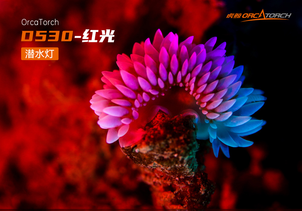 • D530 紅色潛水手電 潛(qián)水攝影照明_潛水照明_水下(xià)攝影照明_潛水攝影補光燈_ 木瓜视频OrcaTorch