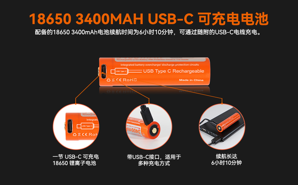 • 采用1節18650鋰(lǐ)離子充電電(diàn)池
