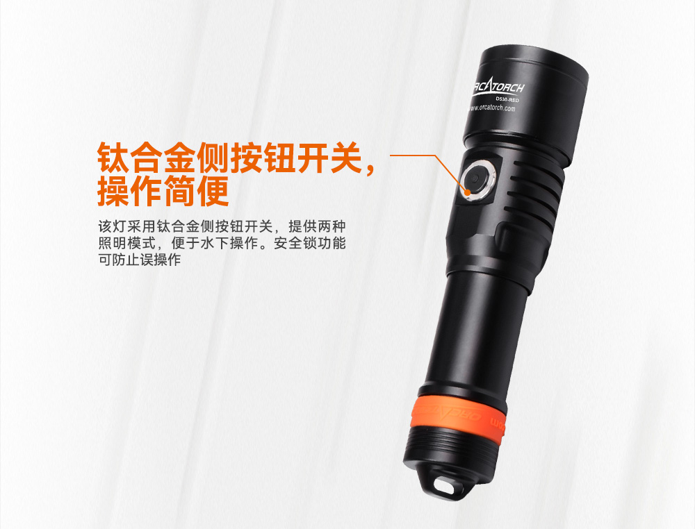 • D530 紅色(sè)潛水手電 潛水攝影照明_潛水照明_水下攝影照明_潛水攝影補光燈(dēng)_ 木瓜视频OrcaTorch